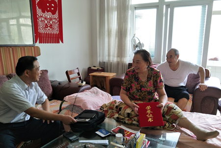 為慶祝建軍90周年,7月31日上午,市質檢所領導班子成員走訪慰問我所退休轉業軍人王萬芬同志,并將我市離退休干部工作委員會頒發的“全市離退休干部黨員先進個人”榮譽證書親自送到對方手中。